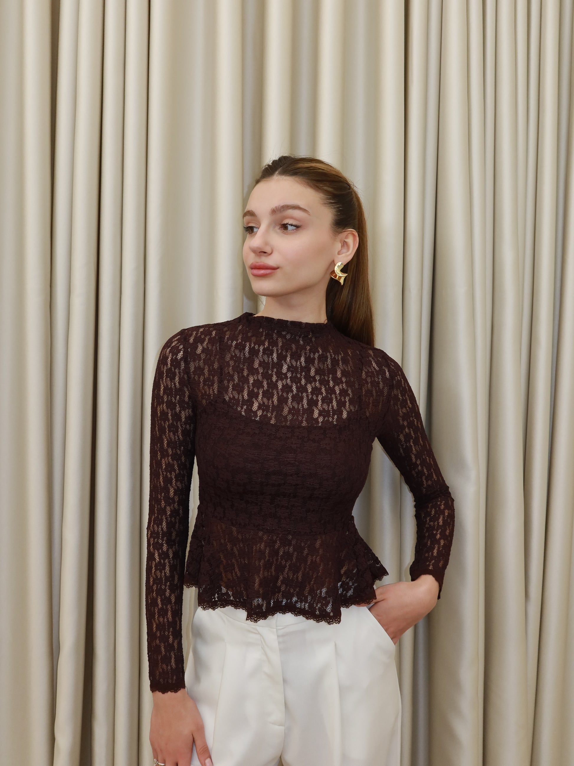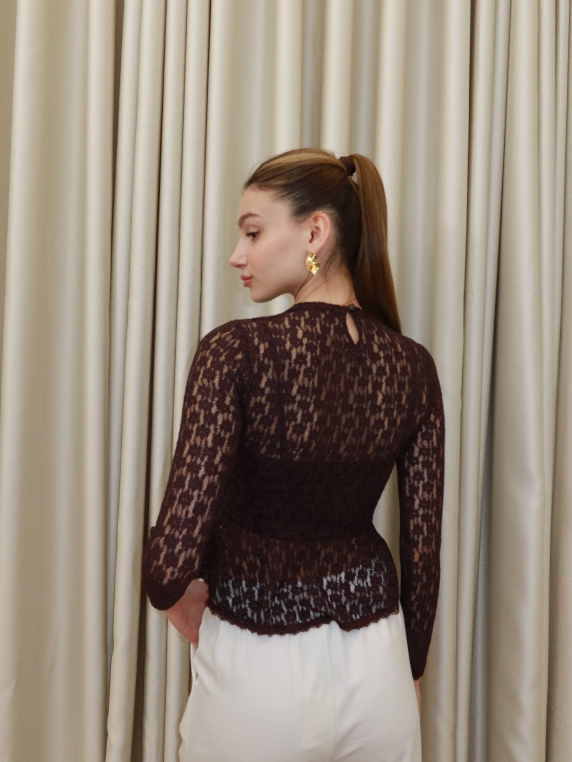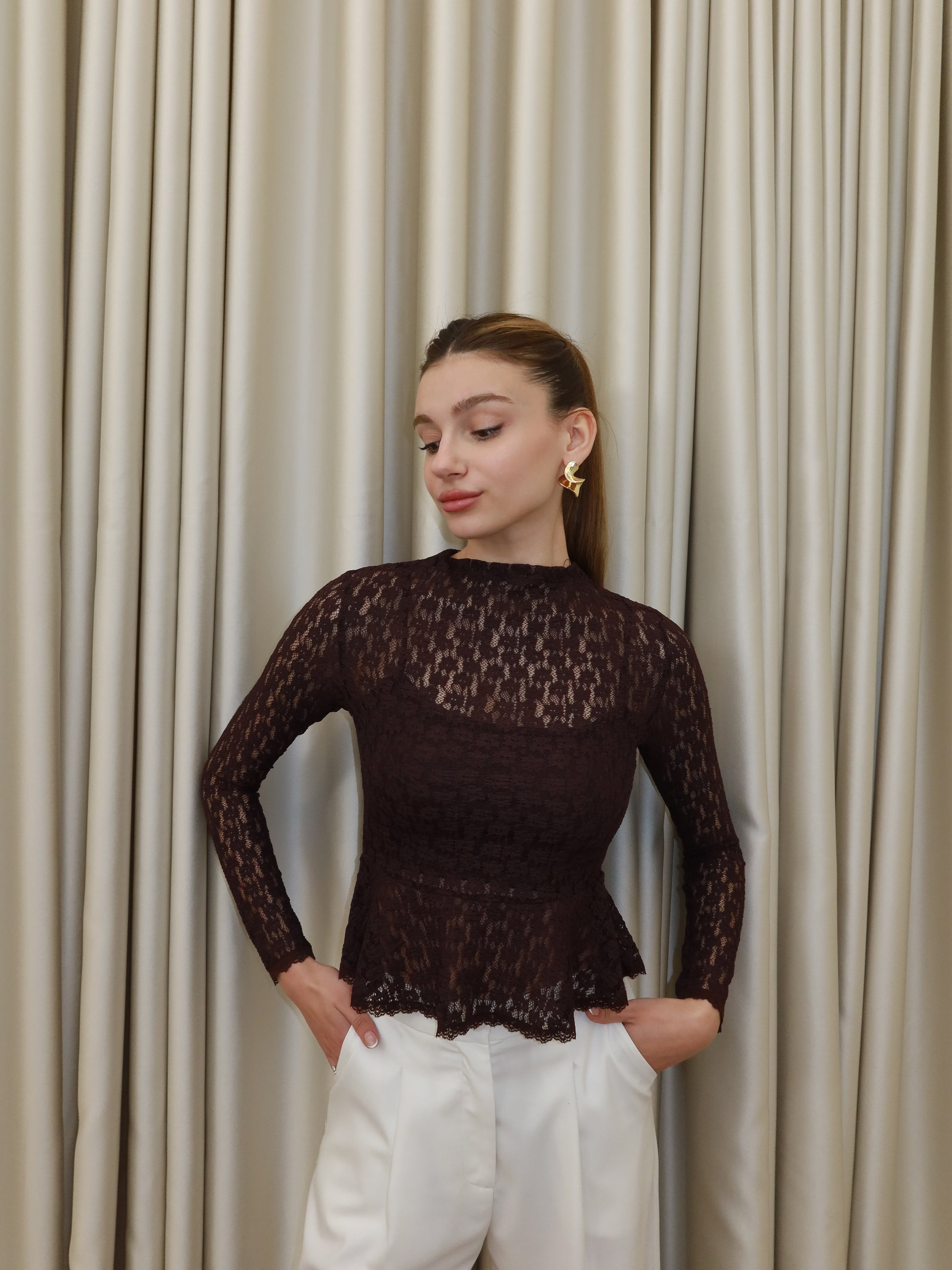 Astarlı Kahverengi Dantel Bluz