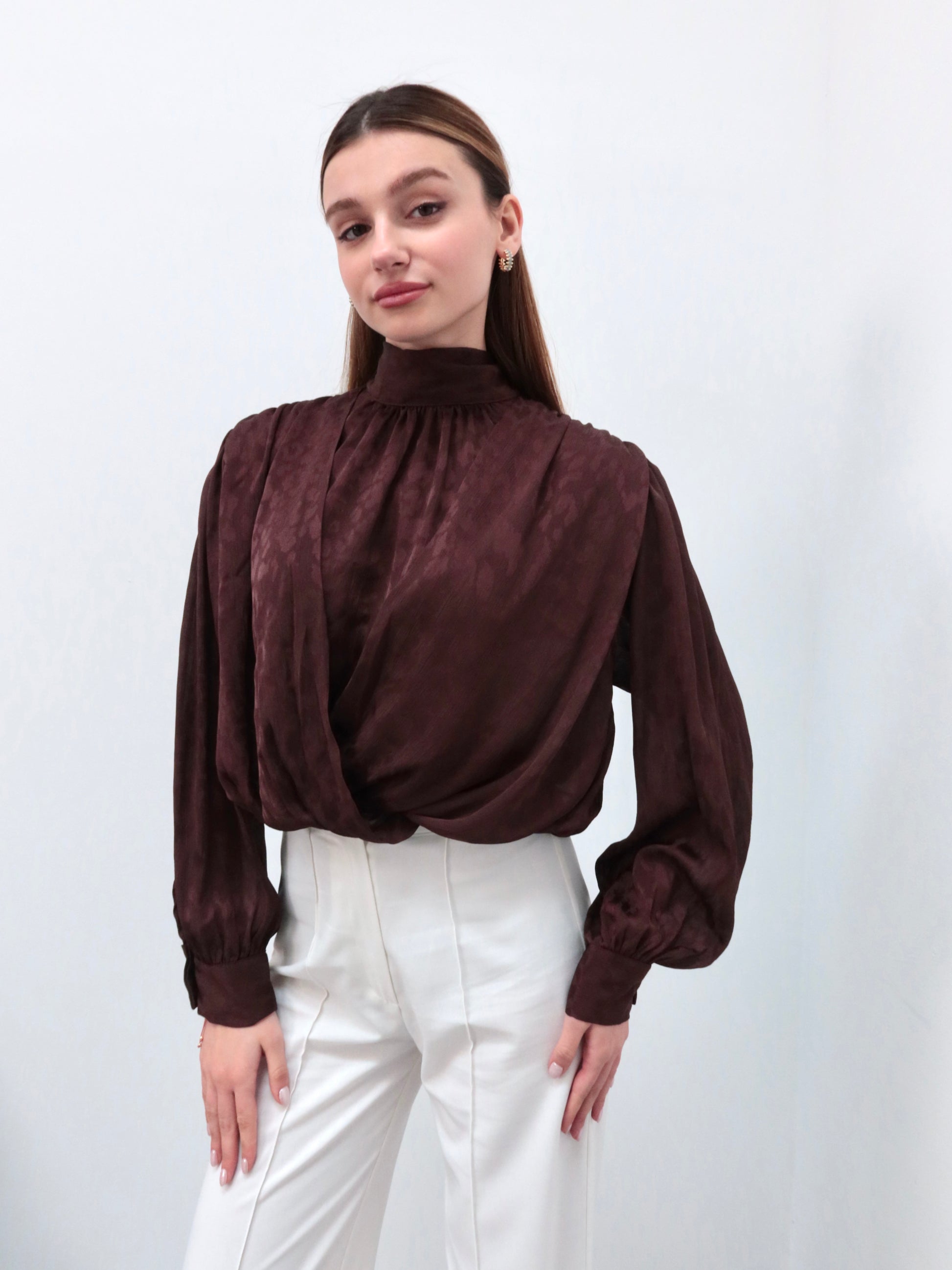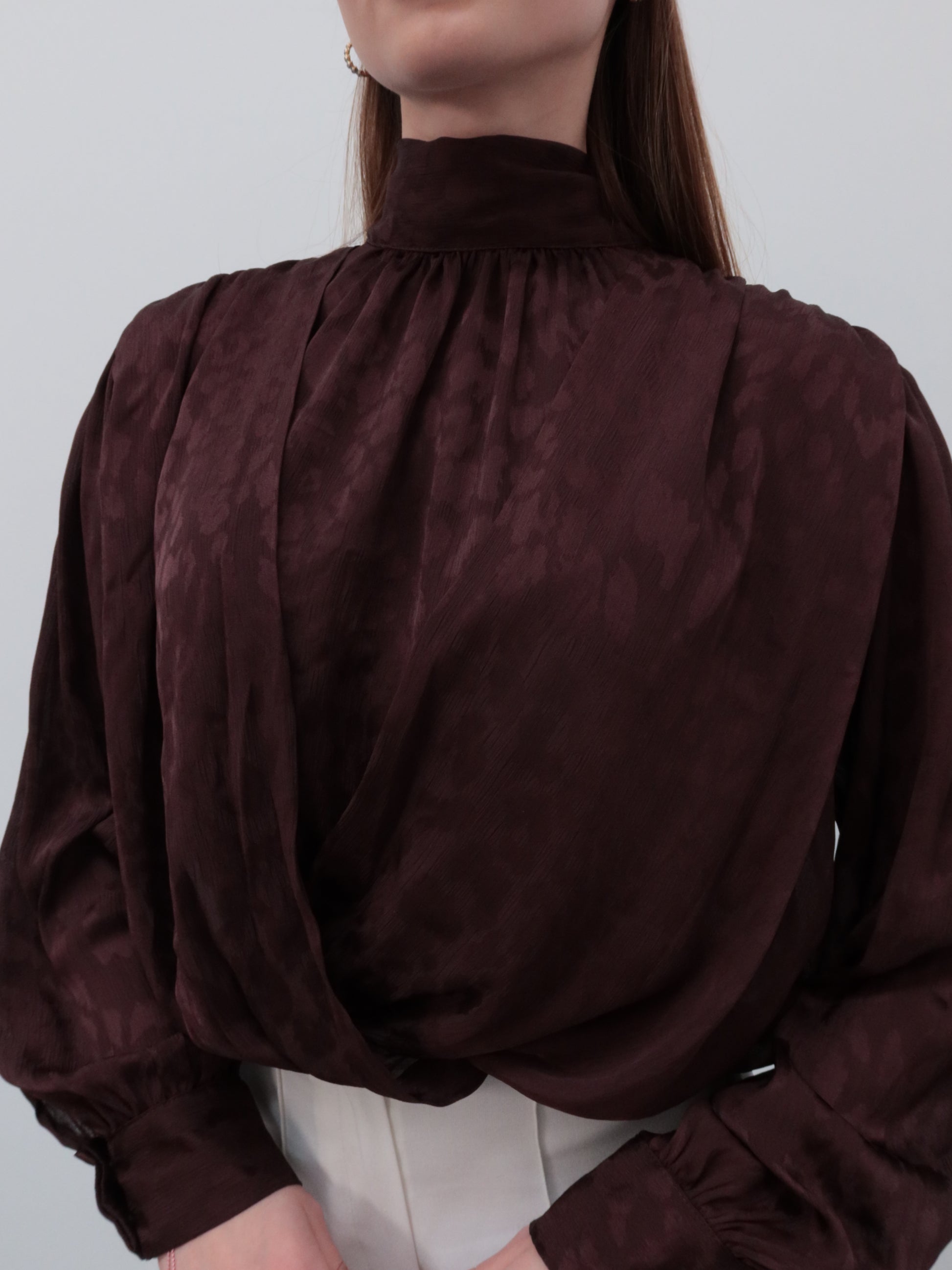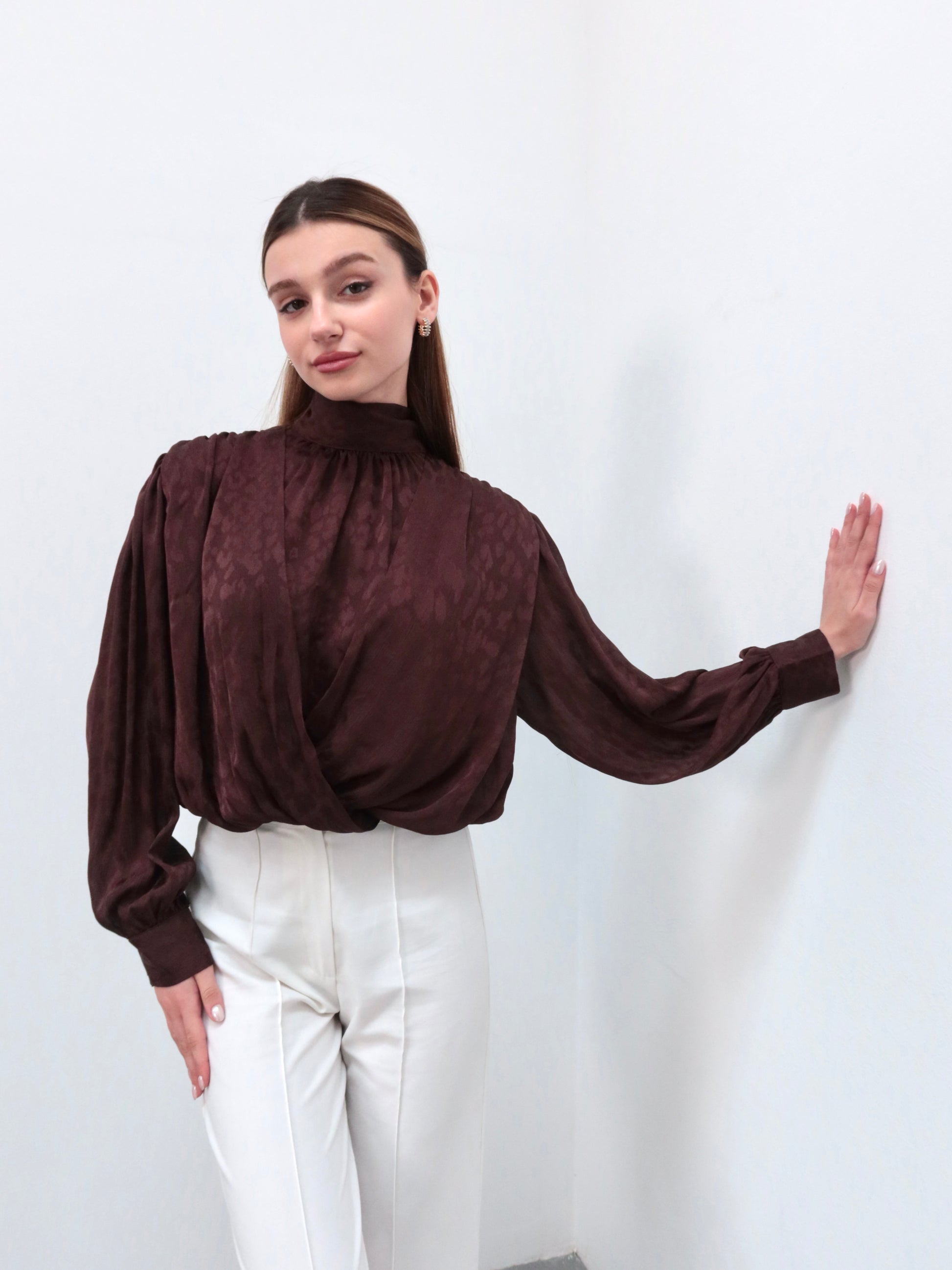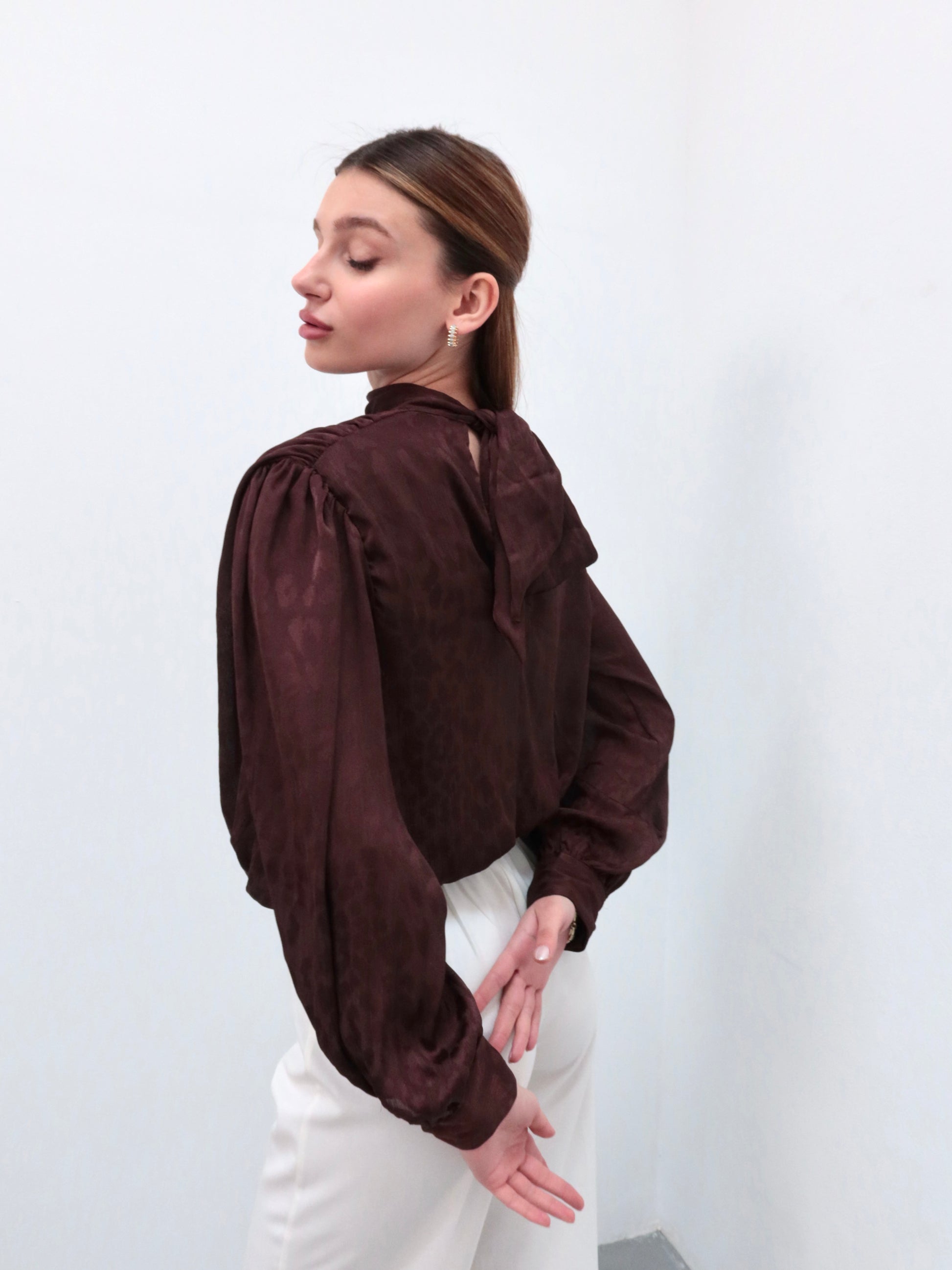 Kahverengi leopar boyundan bağlamalı gömlek