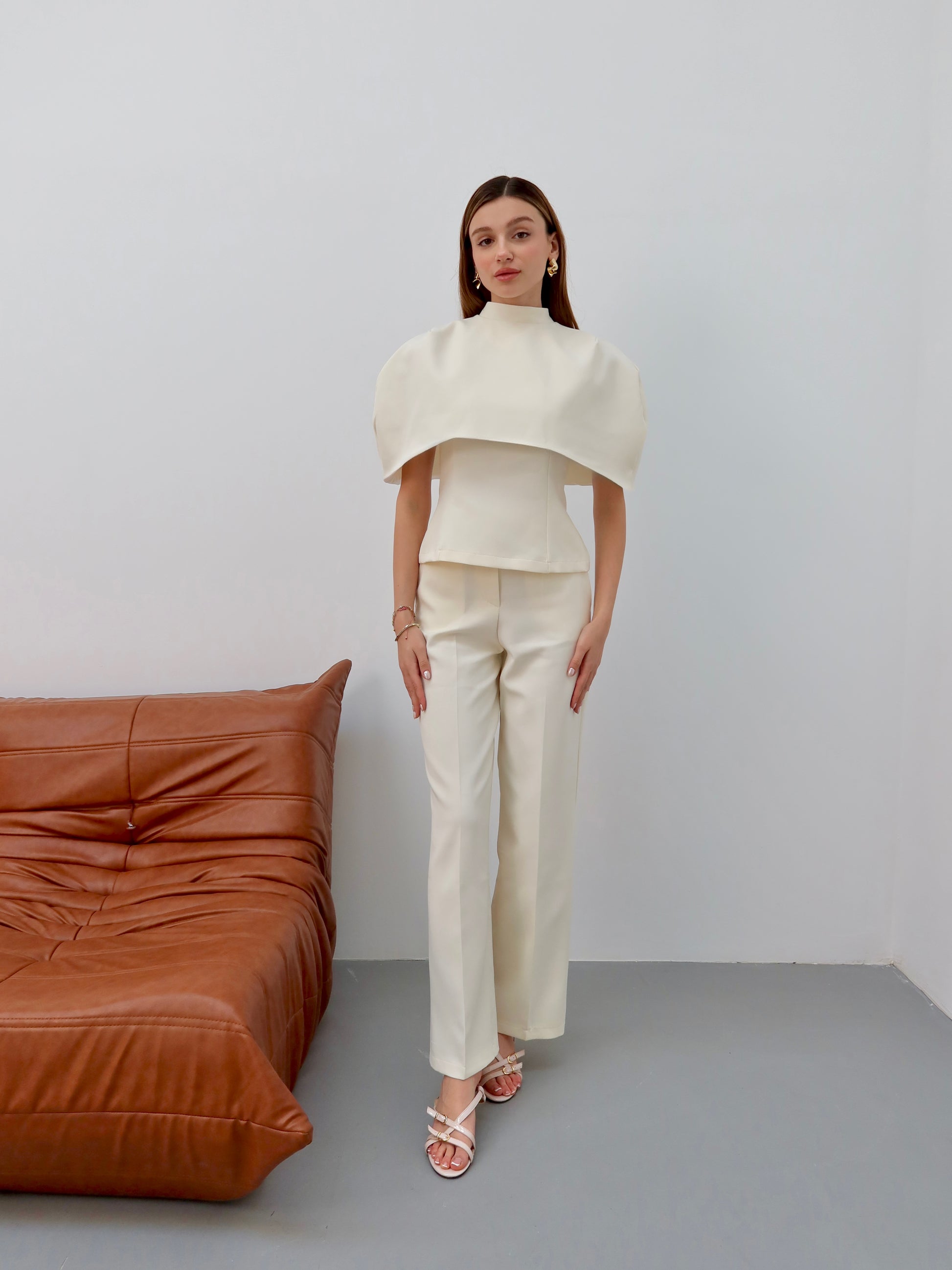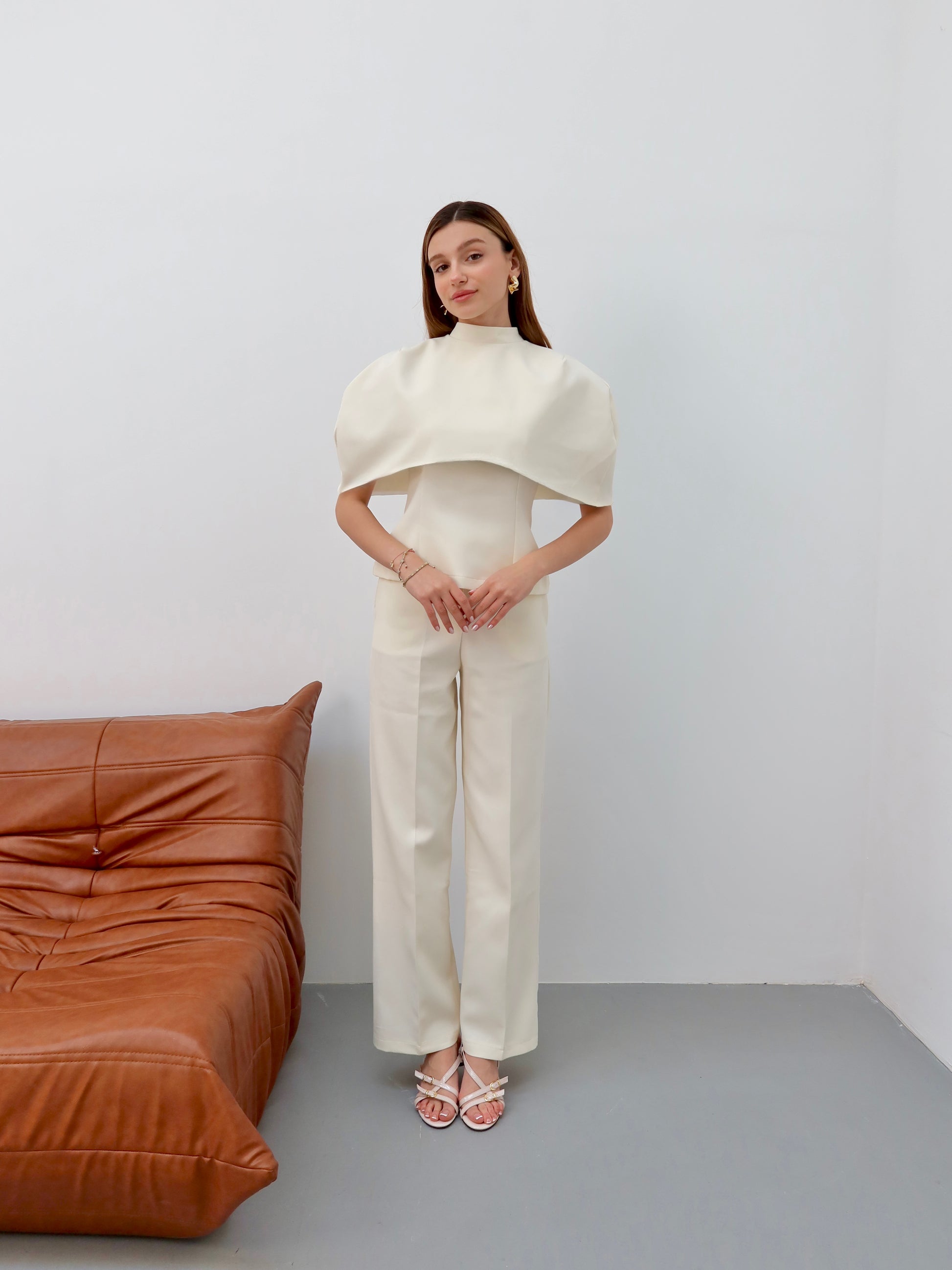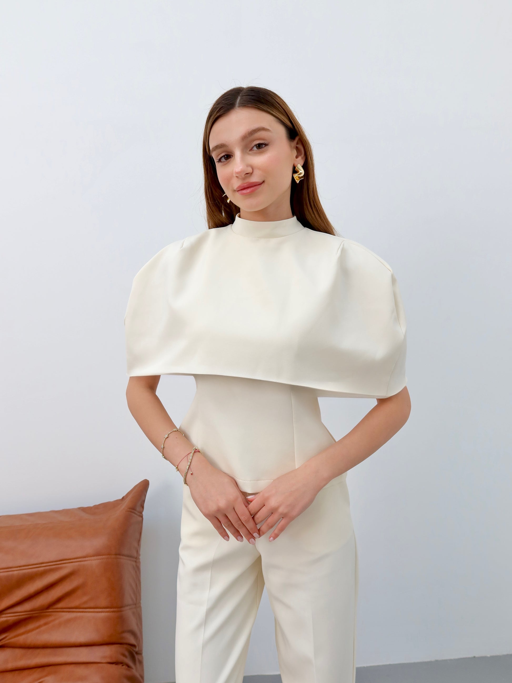 Krem Pelerinli 3’lü takım
