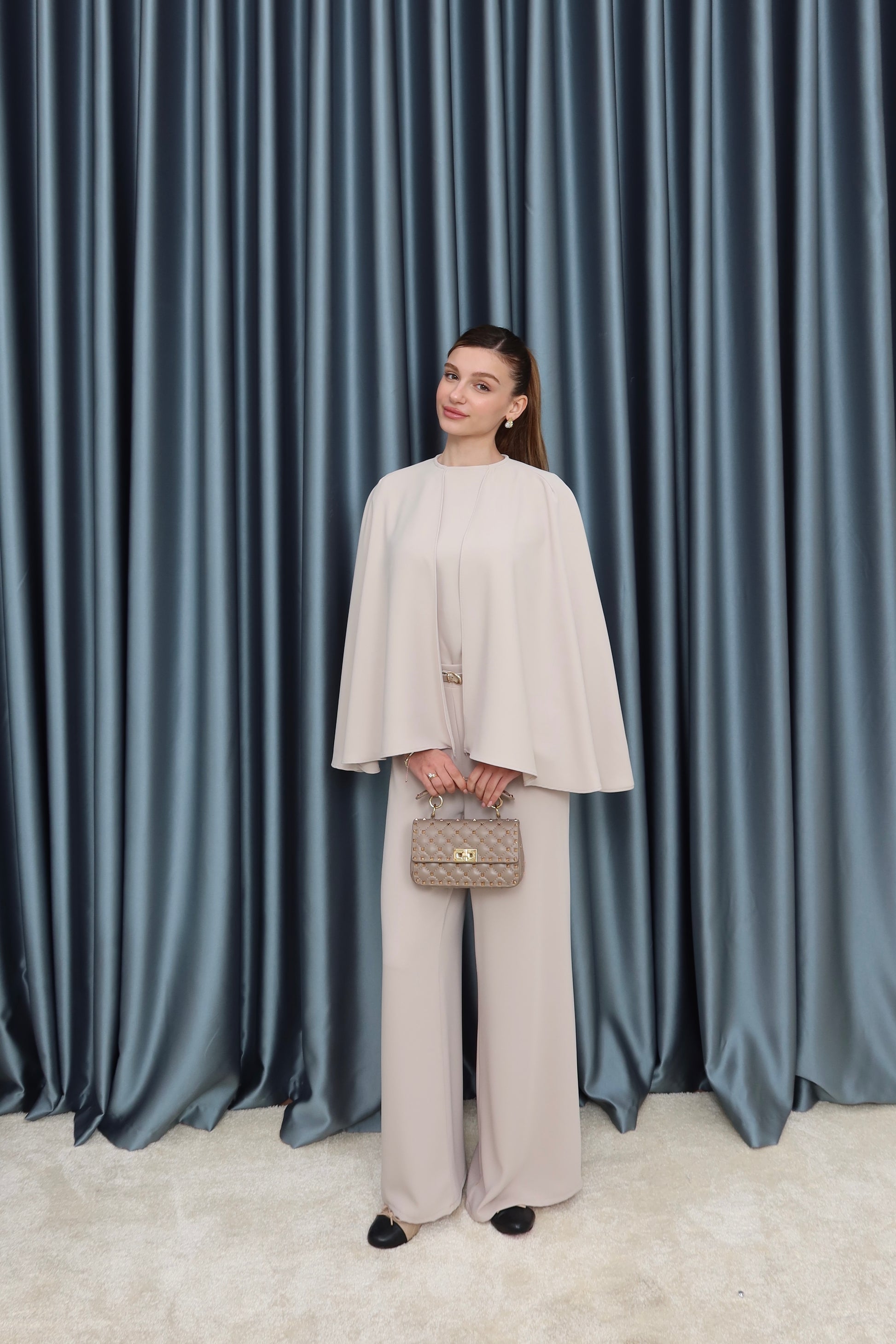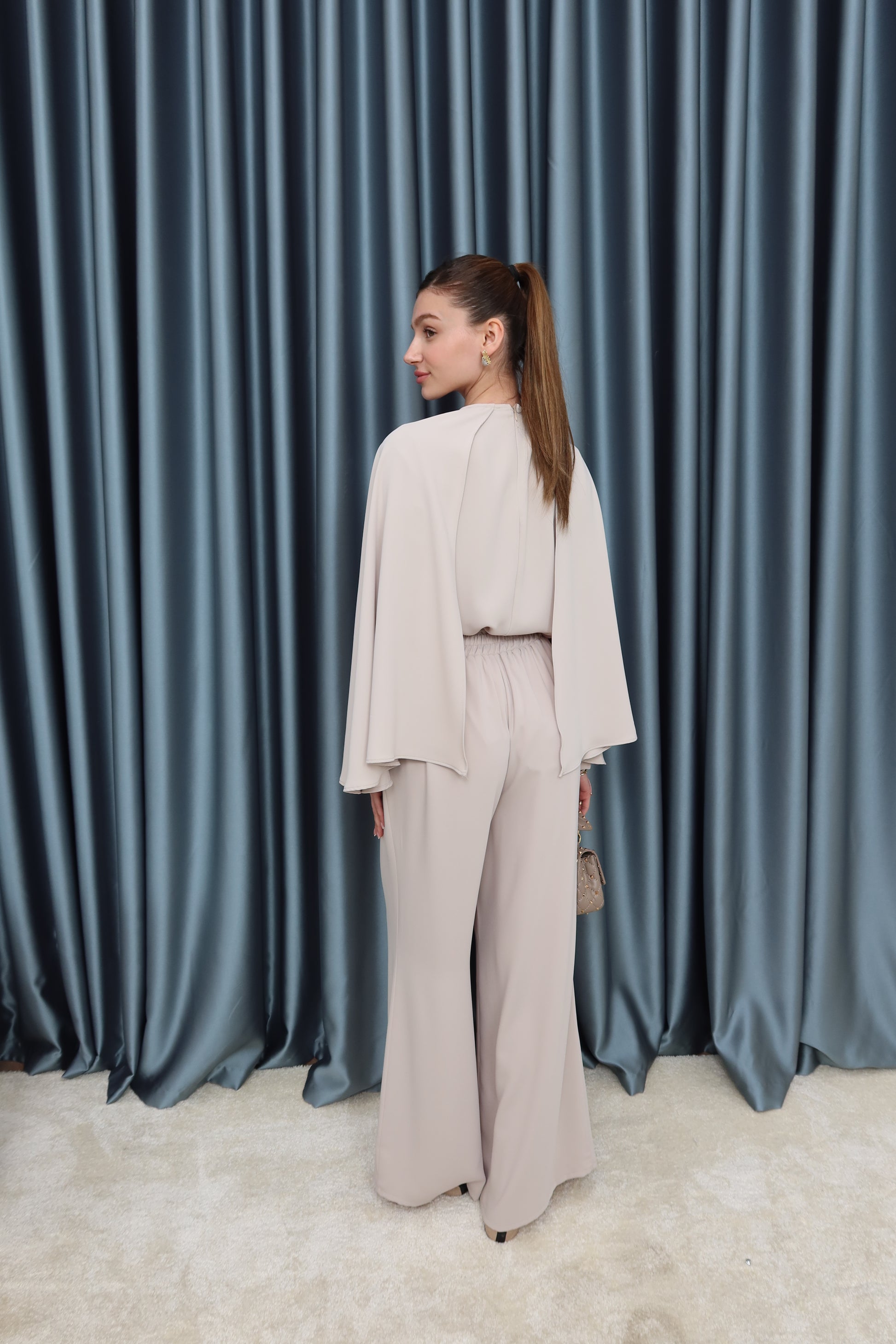 Krem pelerin takım