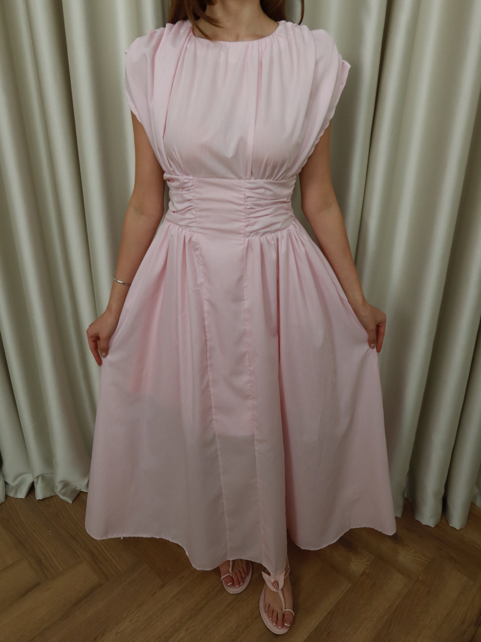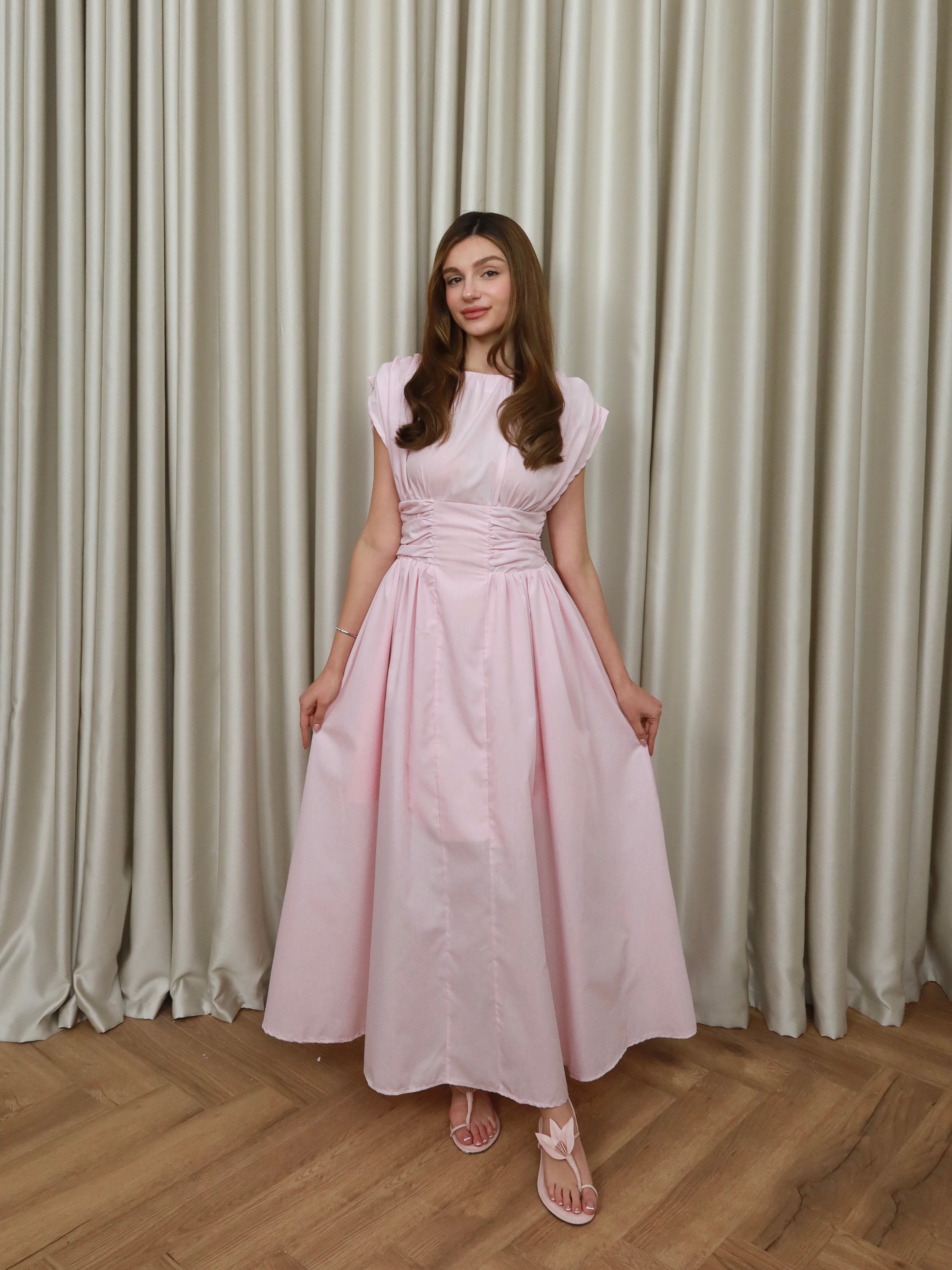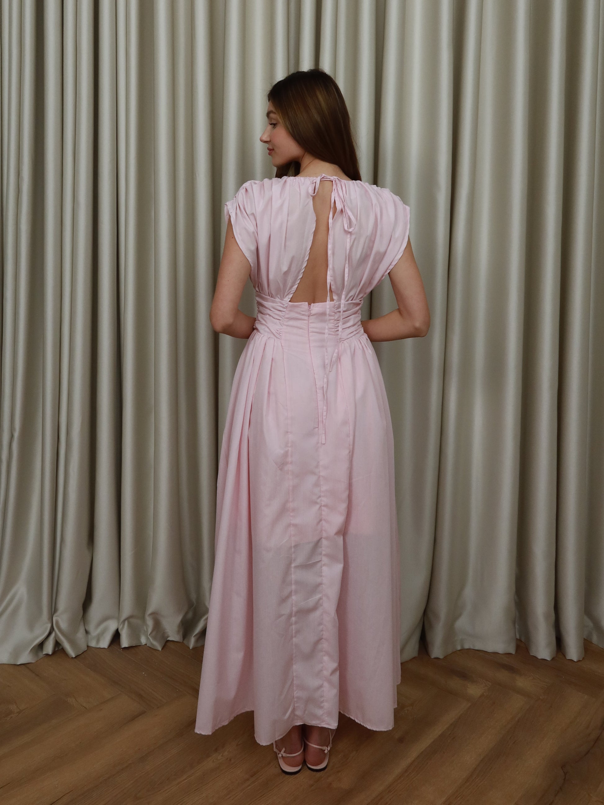 Pembe uzun elbise