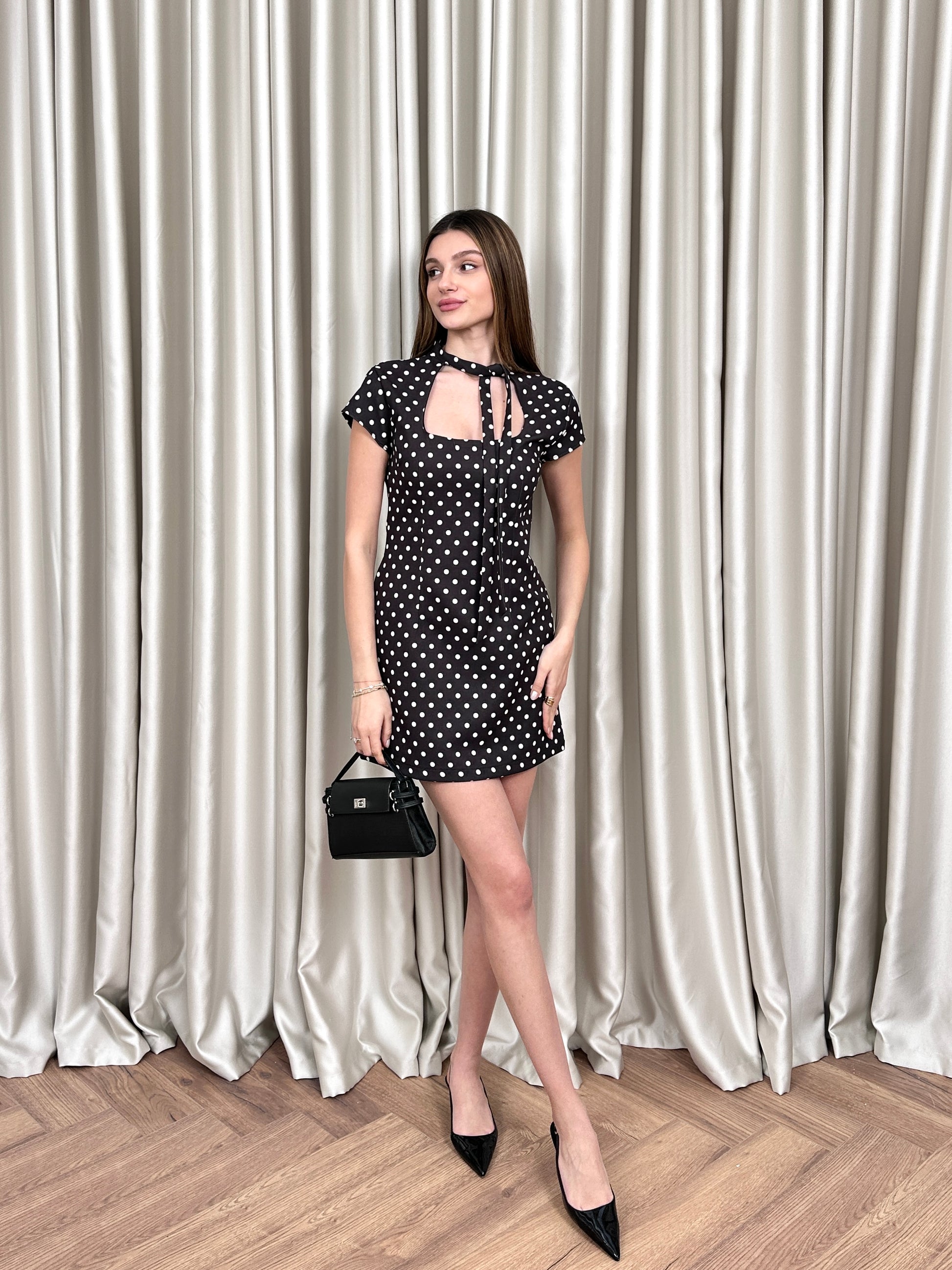 Puantiye boyundan bağlama şortlu elbise