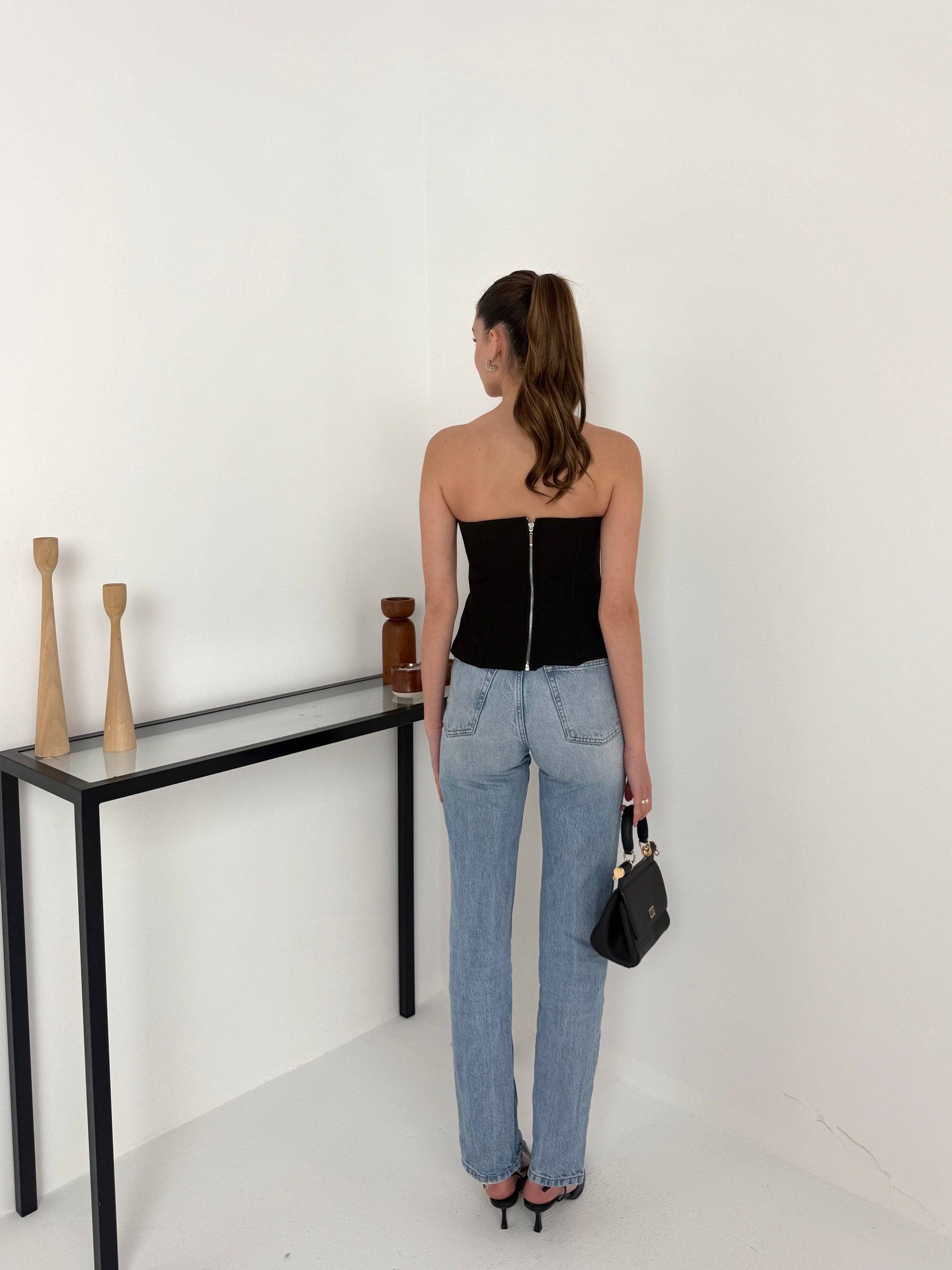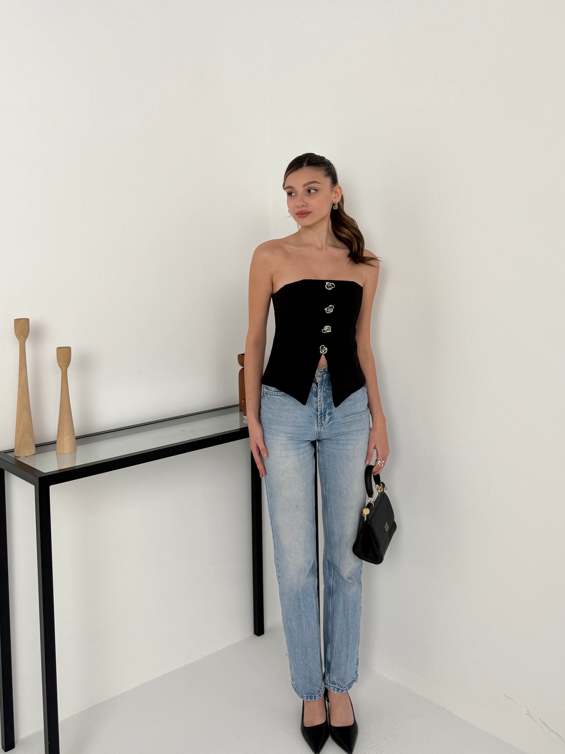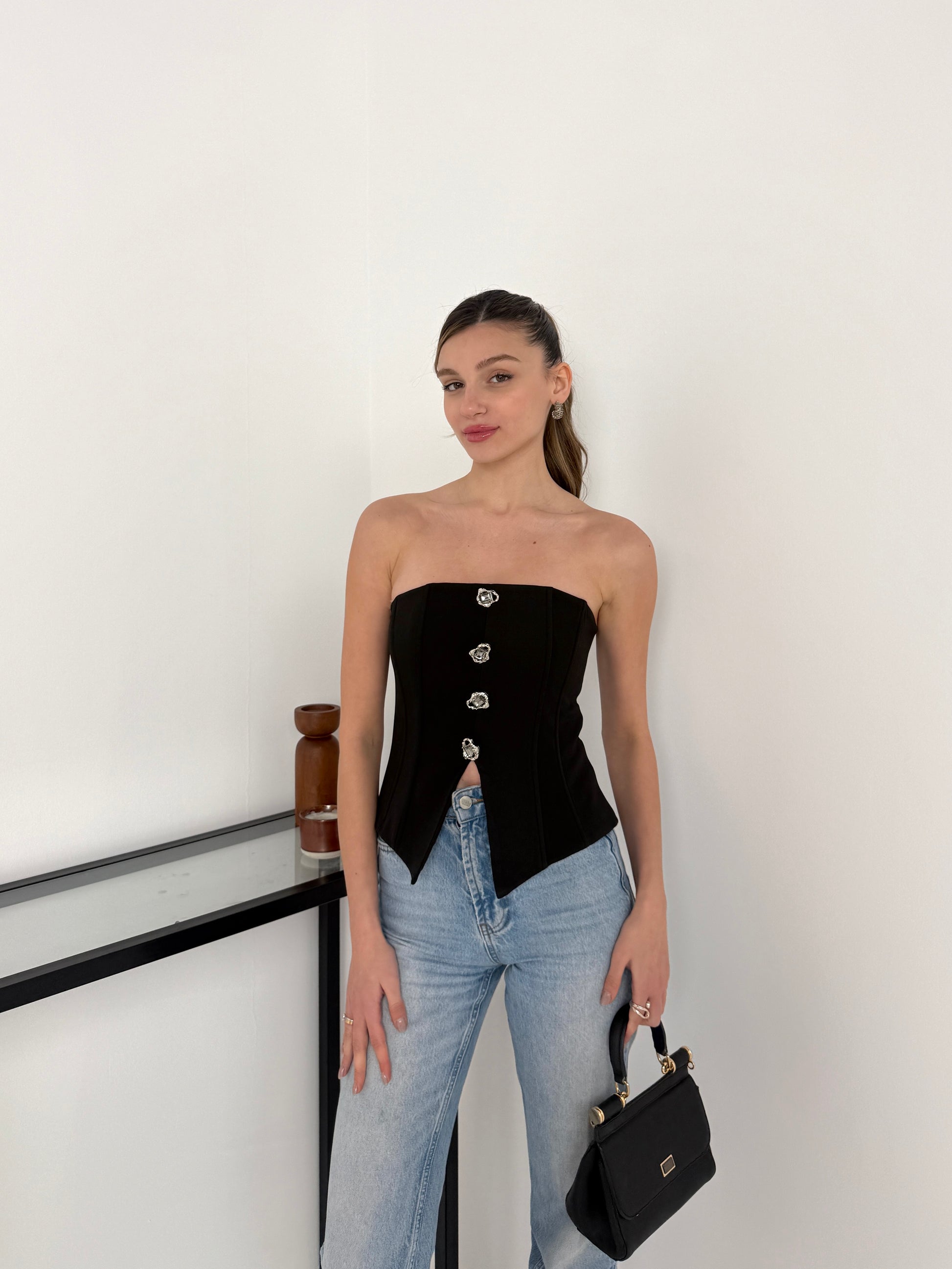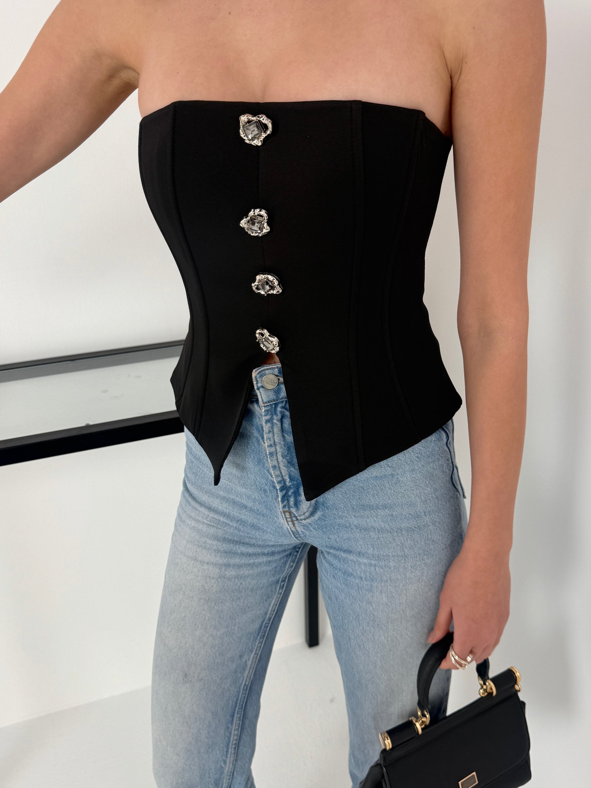 Siyah taş detaylı korse